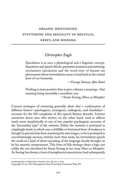 Talking Normal: Literature, Speech Disorders, and Disability, Routledge, 2015