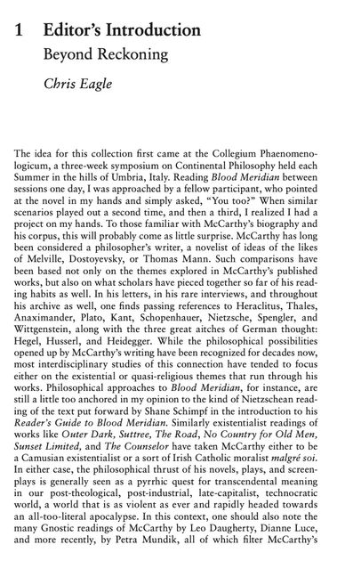 Beyond Reckoning: Philosophical Approaches to Cormac McCarthy, Routledge, 2017